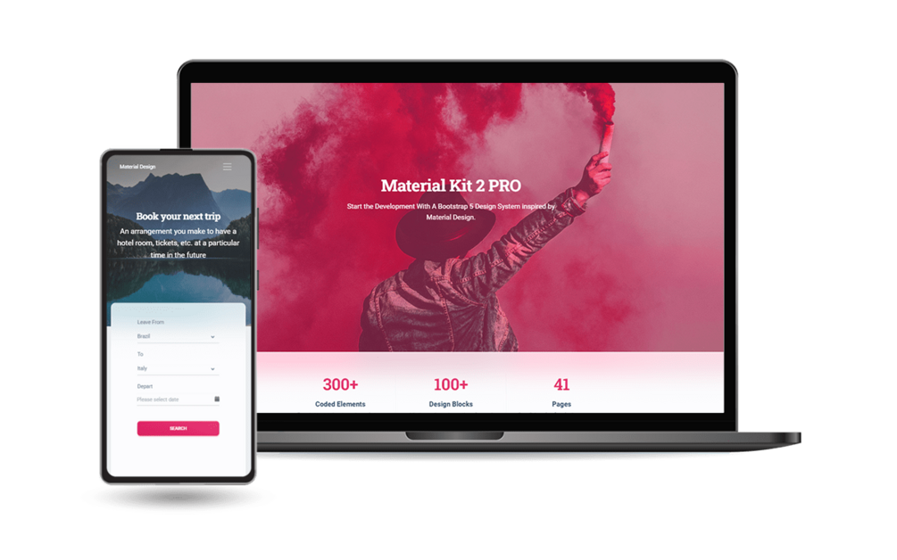 Material Kit 2 is a premium design crafted on top of Bootstrap 5 that provides hundreds of elements, designed blocks, and fully coded pages.