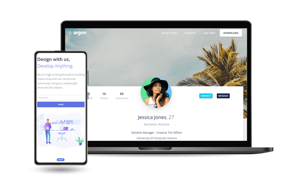 Argon Design System is a premium design crafted on top of React that provides hundreds of elements, designed blocks, and fully coded pages.